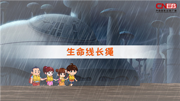 當積水到膝蓋深的時候,在水中行走就會有危險。這時,大家用長繩把身體連起來,一起抵擋洪流,會更安全。