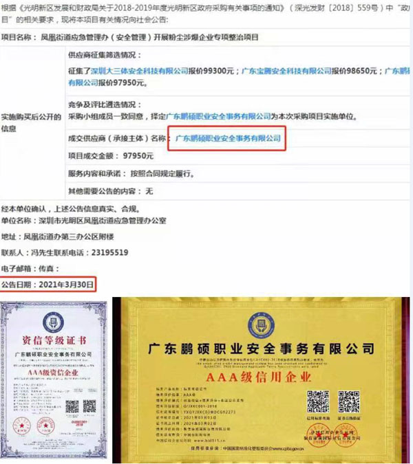 街道應急辦開展粉塵涉爆企業專項整治項目中標:廣東鵬碩職業安全事務有限公司